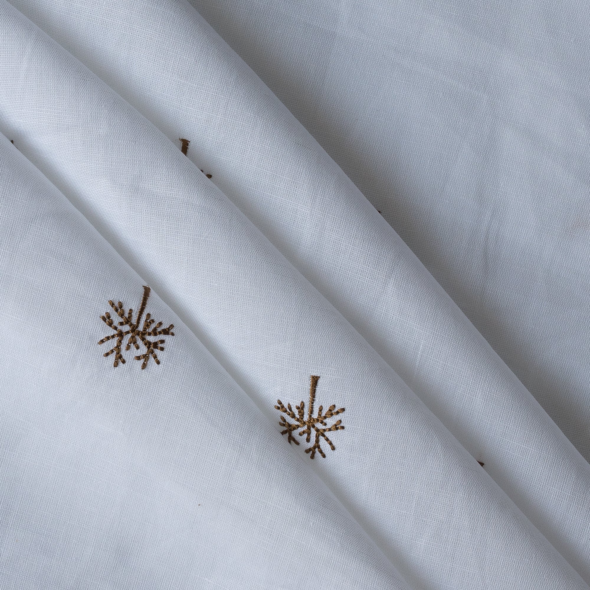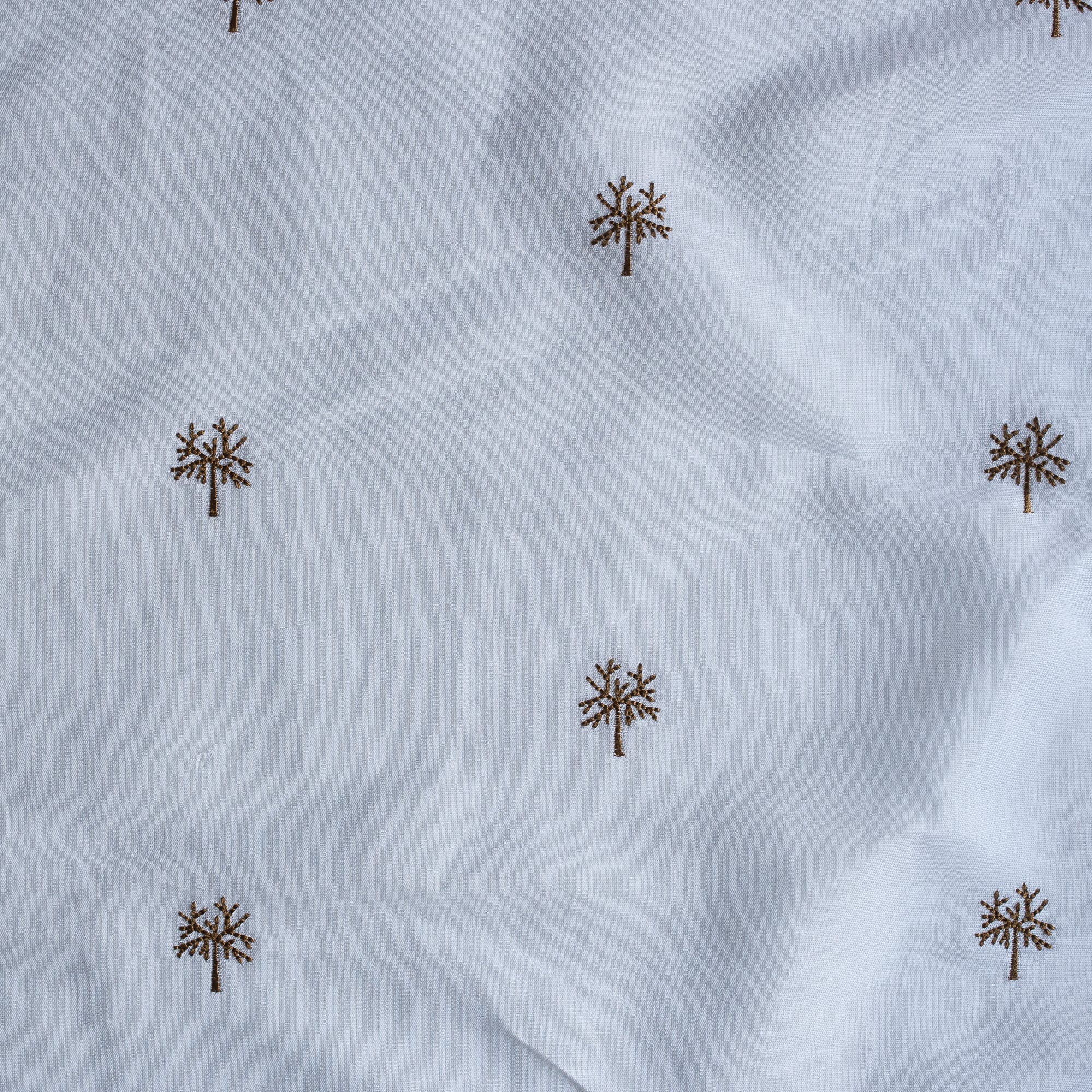 Introducing Wintertree Embroidery, a beautifully refined linen–cotton fabric featuring a delicate dark-golden embroidered tree motif on a pure white base. The design evokes the quiet beauty of winter branches—minimal, elegant, and thoughtfully detailed—making it perfect for sewists who appreciate subtle artistry.